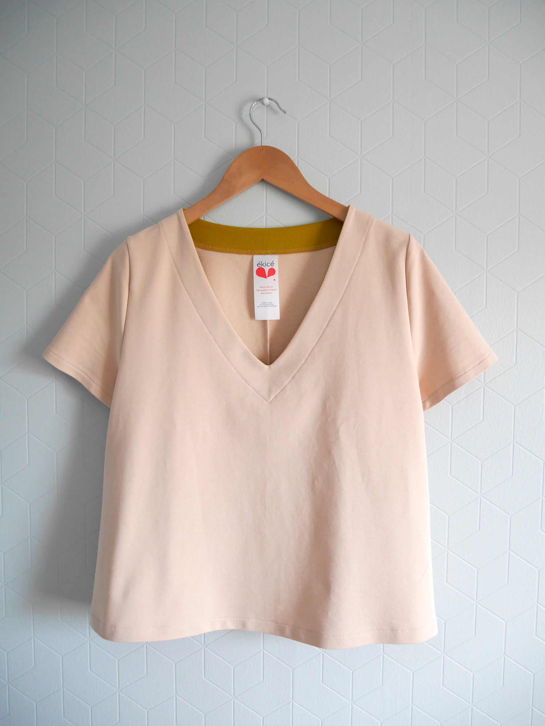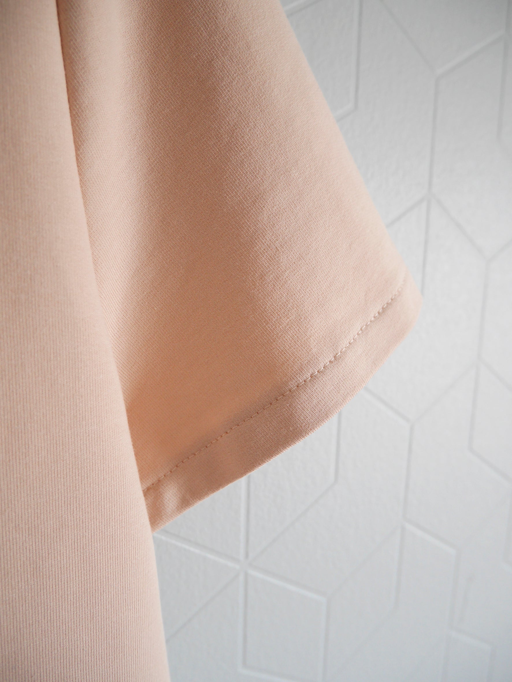 Tee shirt en beau jersey de coton épais et de bonne tenue couleur beige rosé lumineux.
